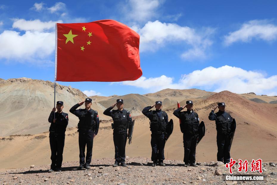 近日,西藏阿里邊境管理支隊扎西崗邊境派出所組織民警和護邊員通過乘車巡邏和徒步巡邏相結合的方式,前往海拔4800米的“守邊固邊第一村”——典角村古格川執(zhí)勤點巡邏,經(jīng)過一個小時的車巡和一個小時的徒步巡邏,民警到達了古格川執(zhí)勤點。通過巡邏,及時掌握了邊境一線情況,確保了邊境轄區(qū)安全穩(wěn)定。圖為移民管理警察與國旗合影。攝影:郭敬遠