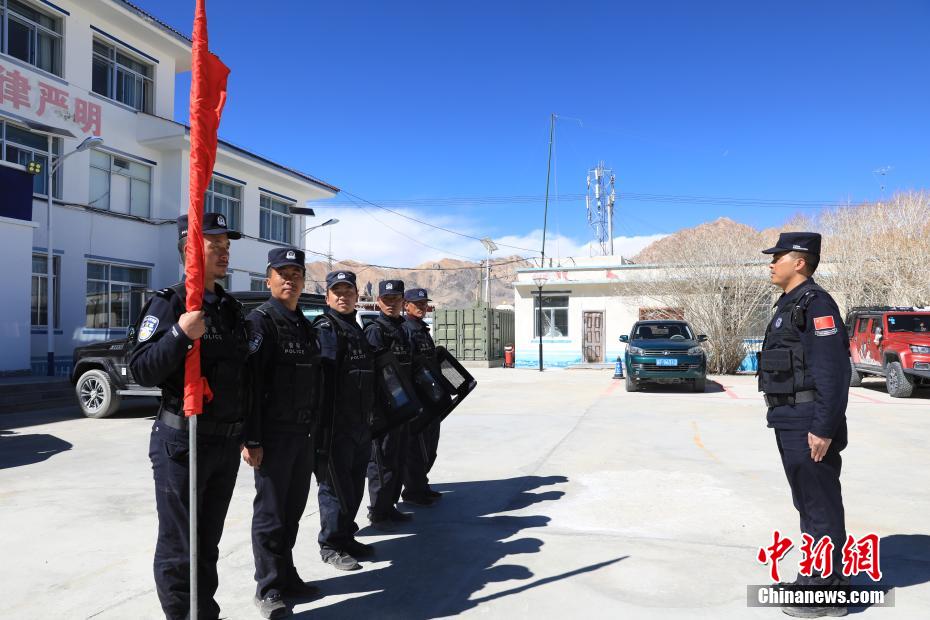 近日,西藏阿里邊境管理支隊扎西崗邊境派出所組織民警和護邊員通過乘車巡邏和徒步巡邏相結合的方式,前往海拔4800米的“守邊固邊第一村”——典角村古格川執(zhí)勤點巡邏,經(jīng)過一個小時的車巡和一個小時的徒步巡邏,民警到達了古格川執(zhí)勤點。通過巡邏,及時掌握了邊境一線情況,確保了邊境轄區(qū)安全穩(wěn)定。圖為扎西崗邊境派出所民警巡邏前集合整隊。郭遠敬 攝