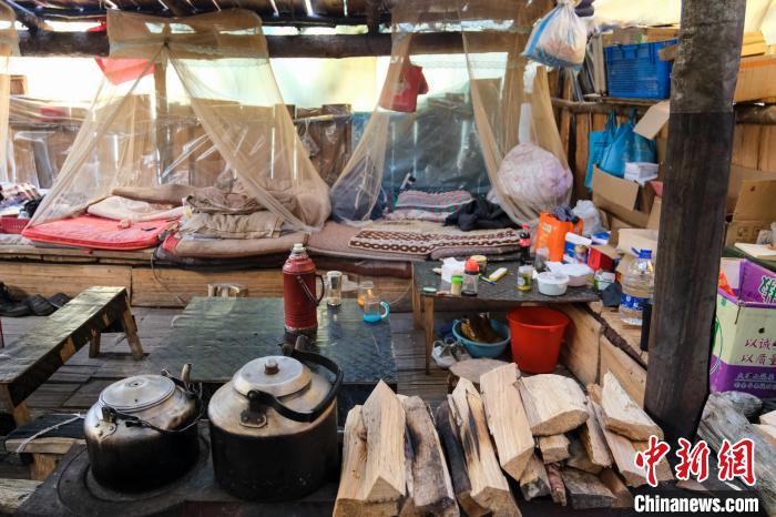 德瑪龍6號(hào)執(zhí)勤點(diǎn)木板房是大家在森林里的庇護(hù)所,進(jìn)入后可以看到房?jī)?nèi)左右兩側(cè)布置了兩排通鋪,每人的床位由一個(gè)罩式蚊帳以及被褥組成,屋子中間有個(gè)藏式爐子,里面燒著并不干燥的木柴。