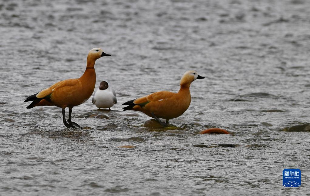 拉薩河上的赤麻鴨和棕頭鷗(4月16日攝)。新華社記者 張汝鋒 攝