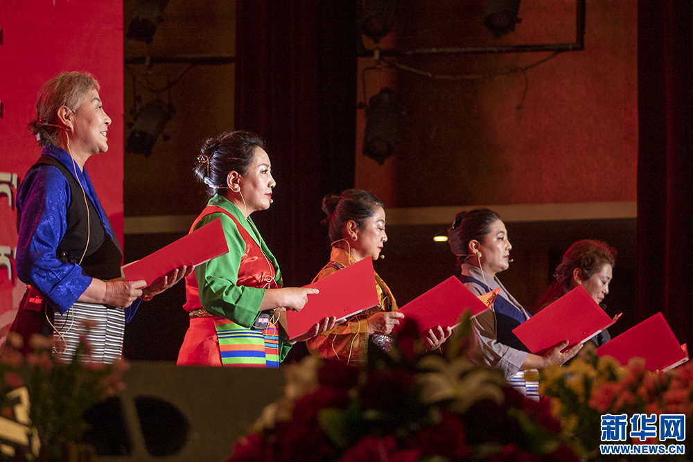 4月23日,拉薩萌升老年大學學員在“夕陽紅”西藏老年閱讀活動現(xiàn)場朗誦。新華網 旦增努布 攝