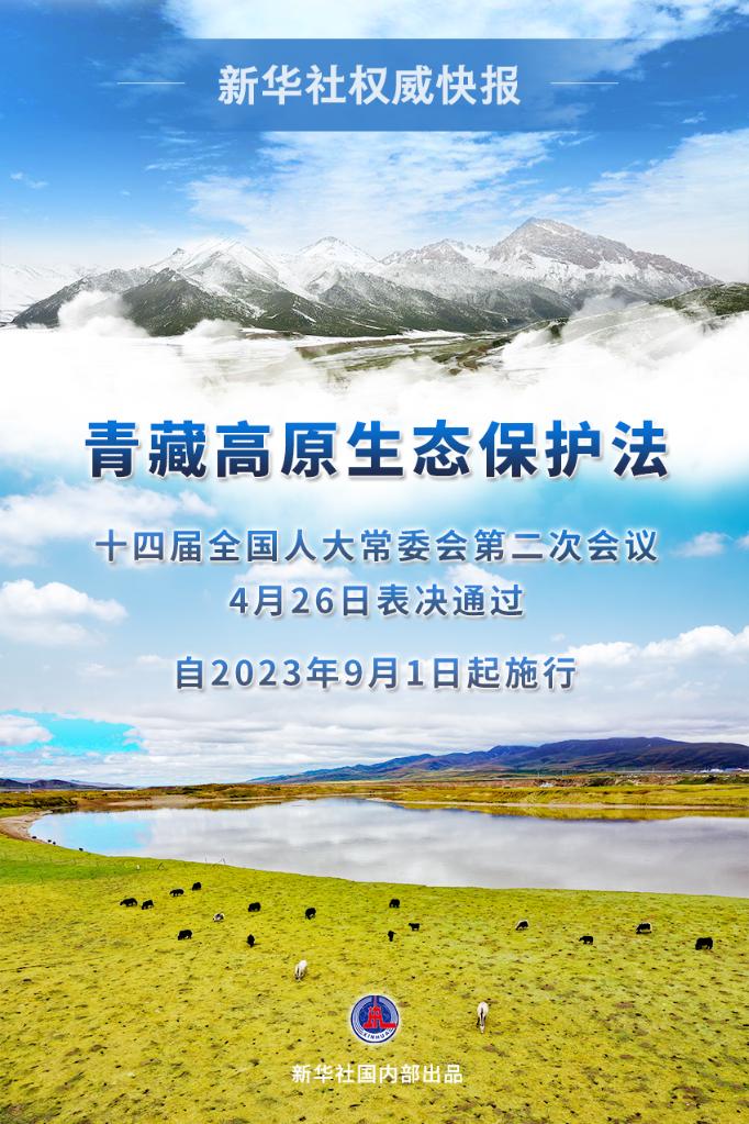 4月26日,十四屆全國人大常委會第二次會議表決通過青藏高原生態(tài)保護(hù)法。法律自2023年9月1日起施行。