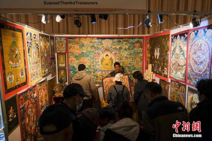 5月4日,西藏(拉薩)中外商品展銷會(huì)現(xiàn)場(chǎng)的唐卡展銷位。據(jù)西藏自治區(qū)外經(jīng)貿(mào)協(xié)會(huì)工作人員介紹,展銷會(huì)從4月29日至5月4日舉行,共有印度、尼泊爾、巴基斯坦、伊朗、塔吉克斯坦、不丹及阿富汗7個(gè)國(guó)家的84名外籍人員攜本國(guó)特色產(chǎn)品參展。中新社記者 江飛波 攝
