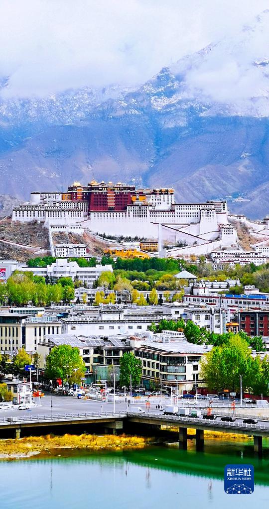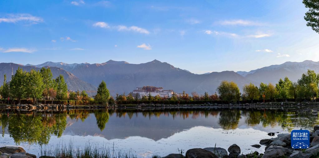 這是在拉魯濕地拍攝的拉薩風(fēng)光,蔥蘢的樹木點綴在城市中,與山色相映成趣(5月12日攝)。新華社記者 姜帆 攝