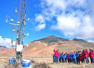 5月15日,珠峰站工作人員席振華給孩子們講解科學(xué)儀器的功能作用。當(dāng)日,西藏日喀則市定日縣扎西宗鄉(xiāng)完全小學(xué)的學(xué)生來(lái)到中國(guó)科學(xué)院珠穆朗瑪大氣與環(huán)境綜合觀測(cè)研究站(簡(jiǎn)稱“珠峰站”),參加主題為“遇見科學(xué) 遇見青藏高原”的公眾科學(xué)日活動(dòng)。孩子們參觀科學(xué)觀測(cè)儀器,零距離感受“第二次青藏科考”,在重點(diǎn)實(shí)驗(yàn)室聽了一堂生動(dòng)的科學(xué)課。新華社記者 孫非攝