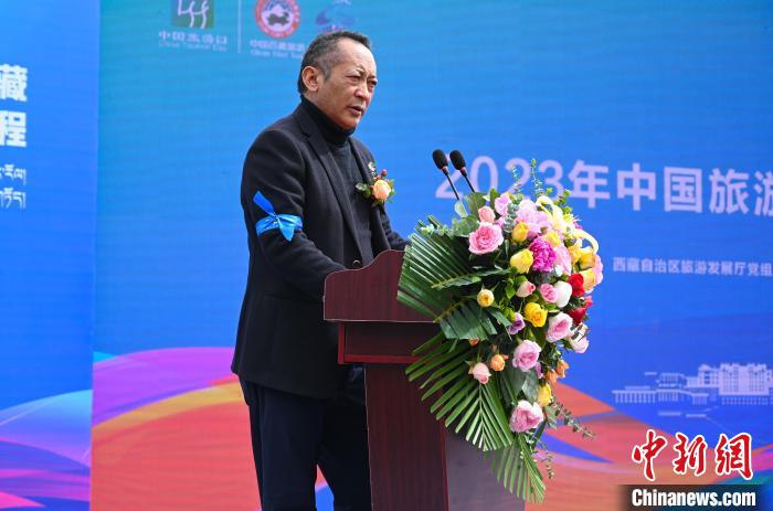 圖為西藏自治區(qū)旅游發(fā)展廳黨組成員、副廳長頓珠致辭。趙朗 攝