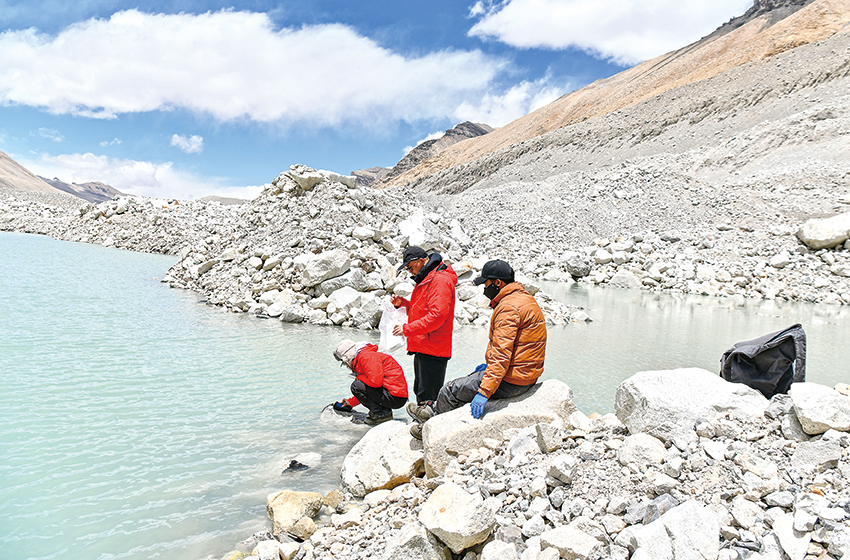 “我們沿著喜馬拉雅山脈做了很多工作,采集了2000多份樣品?!眲⒓褲M懷憧憬地說(shuō),“我們會(huì)從大本營(yíng)出發(fā)努力接近海拔7000米區(qū)域,完成15個(gè)雪冰樣品和15個(gè)沙石樣品采集。希望通過(guò)一塊塊拼圖,努力還原青藏高原形成演化的‘大圖紙’?!?/p>