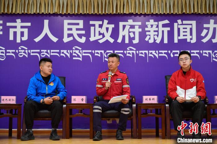 圖為拉薩市青年志愿救援隊代表陳雷(中)正在分享志愿服務經(jīng)歷?!∝暩聛硭?攝