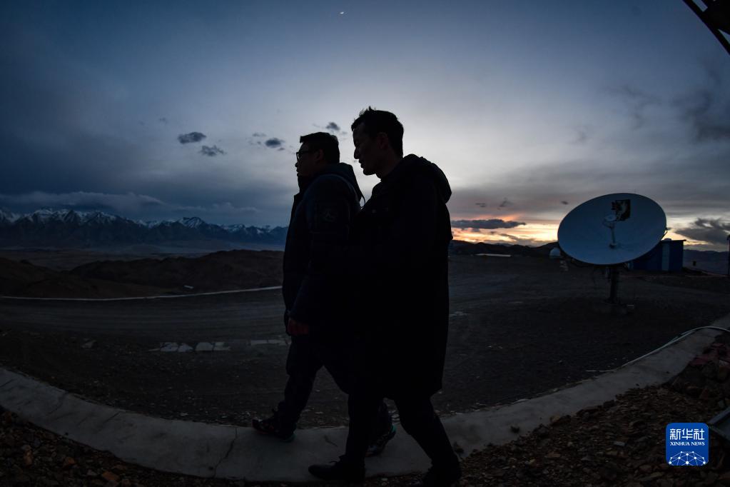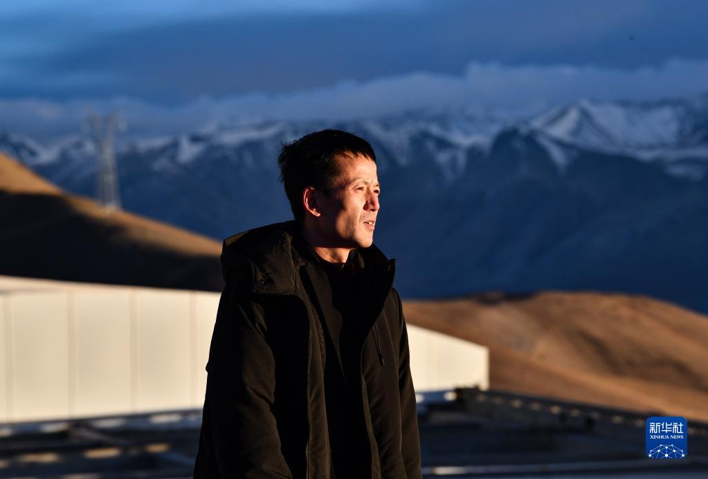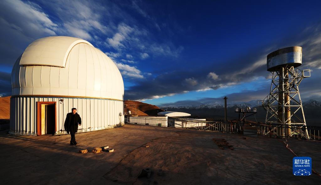 5月24日,日落時(shí)分,在阿里天文臺(tái),尤顯龍走出望遠(yuǎn)鏡圓頂。新華社記者 費(fèi)茂華 攝