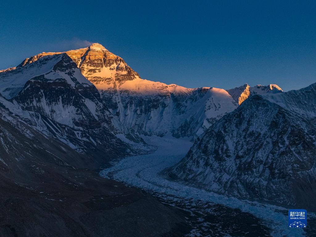這是5月11日日落時分拍攝的珠穆朗瑪峰(無人機(jī)照片)。新華社記者 孫非 攝
