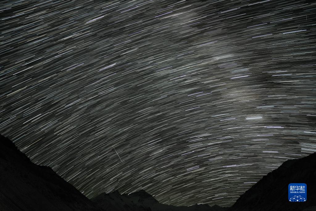 這是5月23日在珠峰大本營拍攝的星軌(合成照片)。新華社記者 孫非 攝