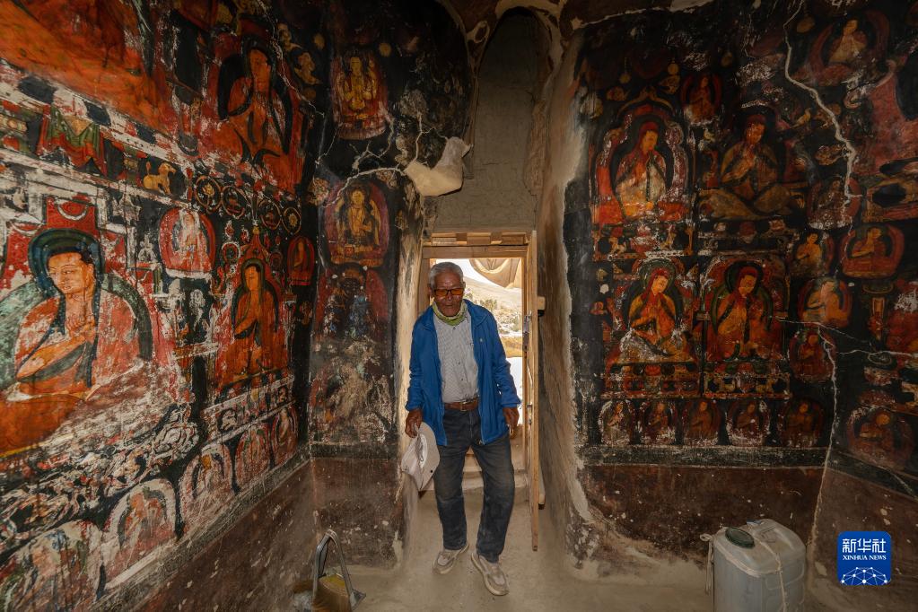 仁增旺扎老人巡查各個(gè)石窟,這是他多年來的習(xí)慣(5月26日攝)。新華社記者 晉美多吉 攝