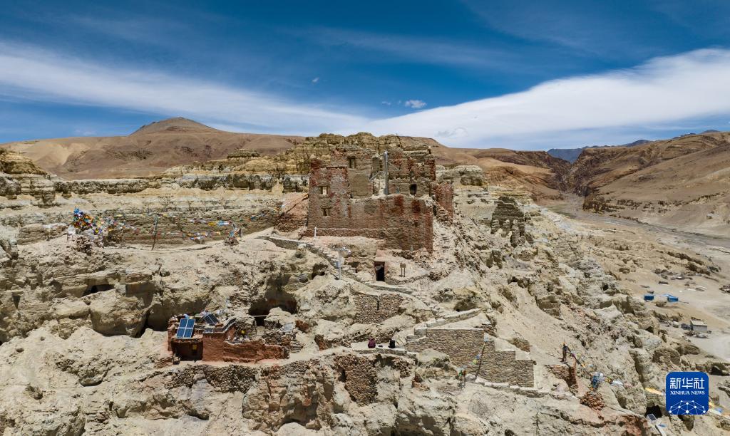 空中俯瞰皮央石窟全景(5月26日攝,無人機(jī)照片)。新華社記者 晉美多吉 攝