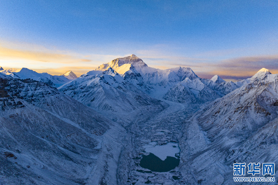 珠穆朗瑪峰與冰湖。新華網 旦增努布 攝