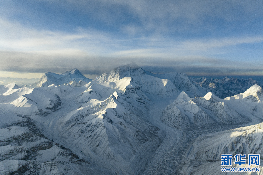 在海拔6200米左右拍攝的珠穆朗瑪峰(無人機照片)。 新華網 旦增努布 攝