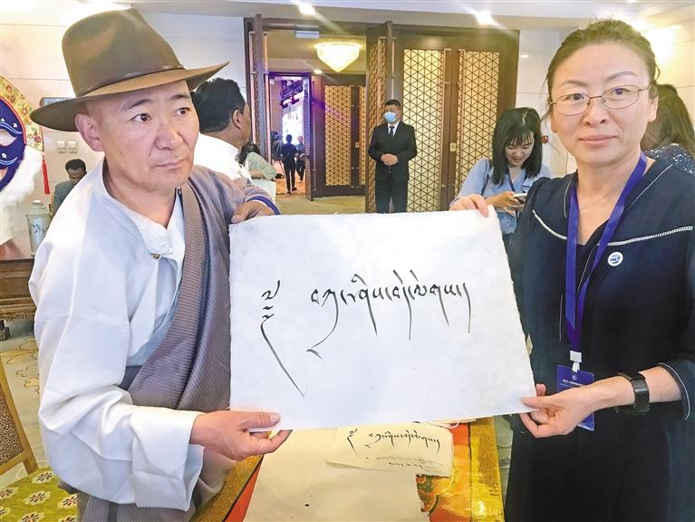 論壇會(huì)上,鋪開獨(dú)特的藏紙,手持光潤的竹筆,48歲的藏文書法家扎西頓珠鄭重寫下“扎西德勒”四個(gè)字,贈(zèng)予前來參會(huì)的中外嘉賓。作為國家級(jí)非物質(zhì)文化遺產(chǎn)代表性項(xiàng)目藏文書法(尼赤)的代表性傳承人,扎西頓珠希望讓更多人感受并了解西藏傳統(tǒng)書法之美。“這次論壇期間,我先后向中外嘉賓送上了300多幅書法作品,我們藏族傳統(tǒng)文化能被全世界看見并受到喜愛,推動(dòng)各民族交往交流交融,感到非常開心和自豪?!眲倧谋本┗貋聿痪?,閑不住的扎西頓珠又在準(zhǔn)備參加藏博會(huì)的書法作品,傳播藏文書法文化。