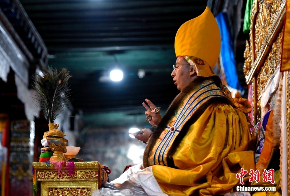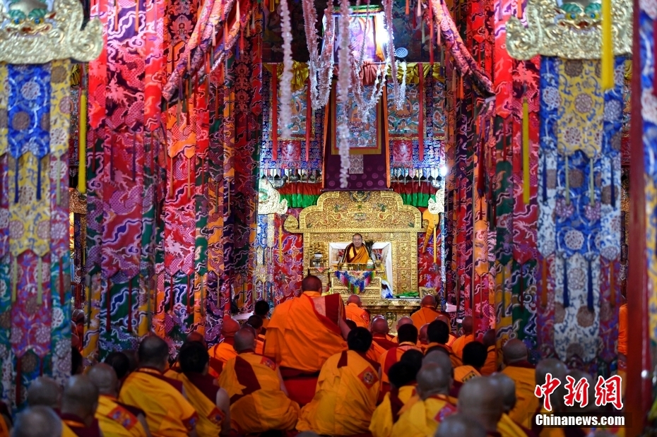 圖為6月12日,班禪在西藏昌都強(qiáng)巴林寺禮佛講經(jīng)。