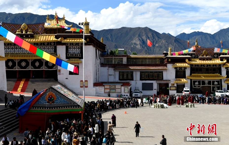 圖為6月12日,信眾在昌都強(qiáng)巴林寺排隊(duì)等待班禪摸頂賜福。
