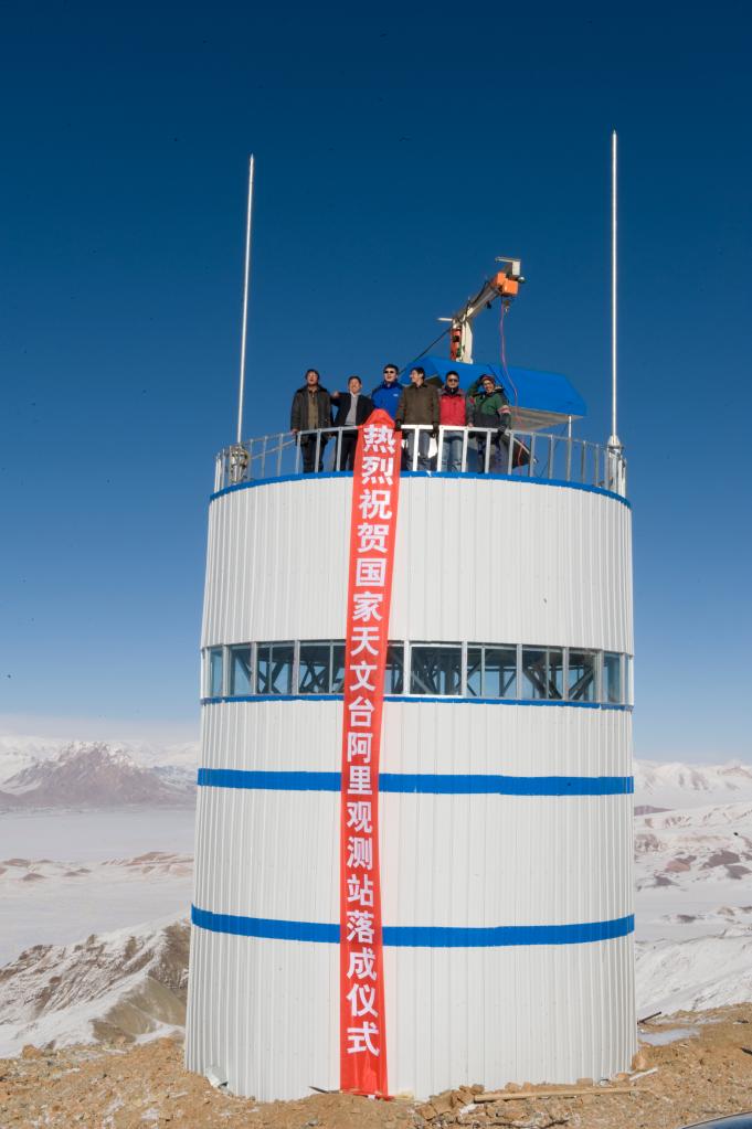 阿里站第一個觀測塔落成(2011年攝,受訪者供圖)。