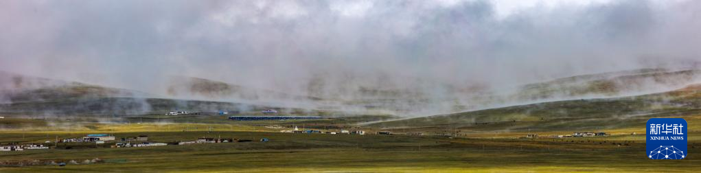 6月16日在國道317線那曲段拍攝的草原晨霧風(fēng)光(拼接照片)。新華社記者 姜帆 攝