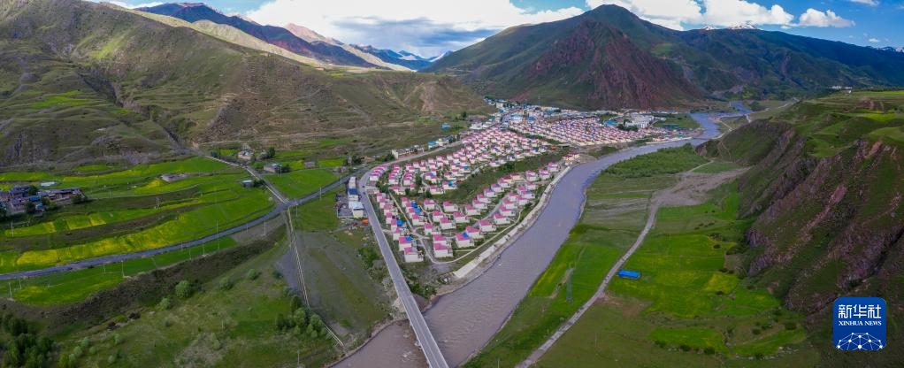 6月22日在國道317線昌都段拍攝的丁青縣的村莊(無人機照片)。新華社記者 姜帆 攝