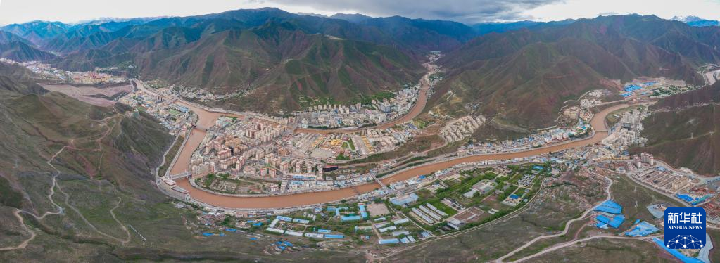 6月22日在國道317線昌都段拍攝的丁青縣尺牘鎮(zhèn)全景(無人機照片)。新華社記者 姜帆 攝