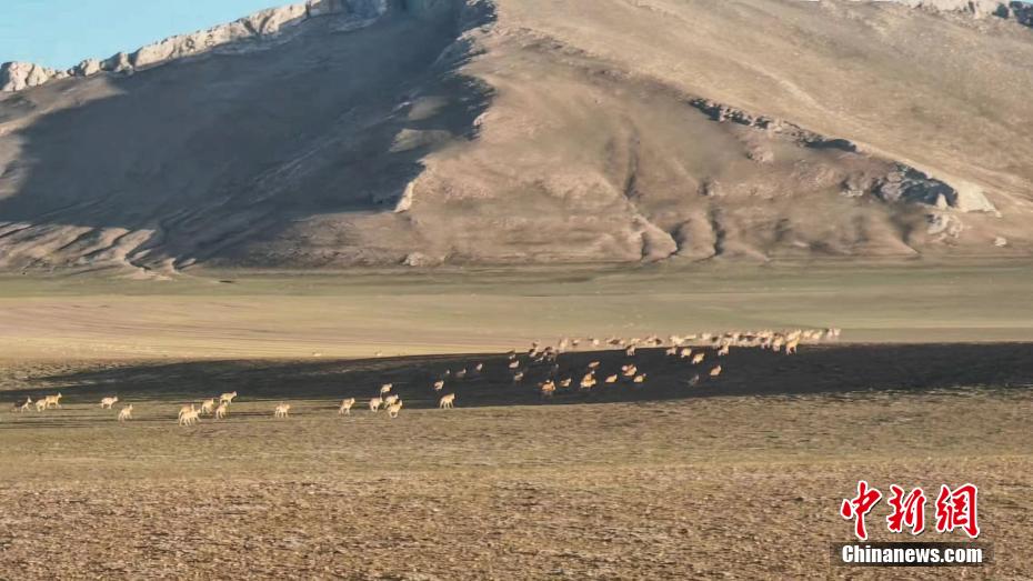 近日,在羌塘國家級自然保護(hù)區(qū)那曲片區(qū),野保員在巡邏中,用第一視角記錄下了藏羚羊群悠然自得的場景。目前,西藏藏羚羊種群數(shù)已超過30萬只。羌塘國家級自然保護(hù)區(qū)總面積29.8萬平方公里,是目前中國海拔最高、面積最大的自然保護(hù)區(qū),橫跨西藏那曲、阿里兩個市地。羌塘國家級自然保護(hù)區(qū)那曲片區(qū),分布著36個專業(yè)管理站,有390名專業(yè)管護(hù)員和205名協(xié)議野保員。圖為成群的藏羚羊。那曲市林草局 供圖