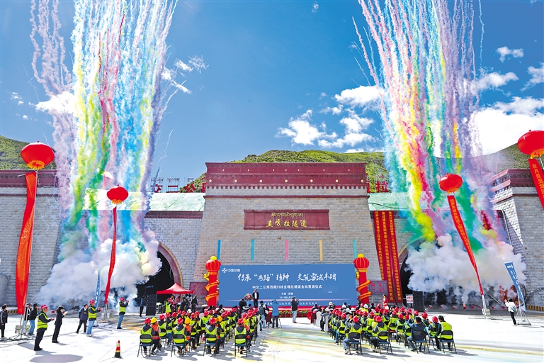 圖為西藏S5線圭嘎拉隧道全線貫通儀式現(xiàn)場。貢曲羅杰 央金 攝