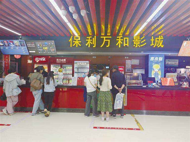 市民在保利萬和影城購買電影票。