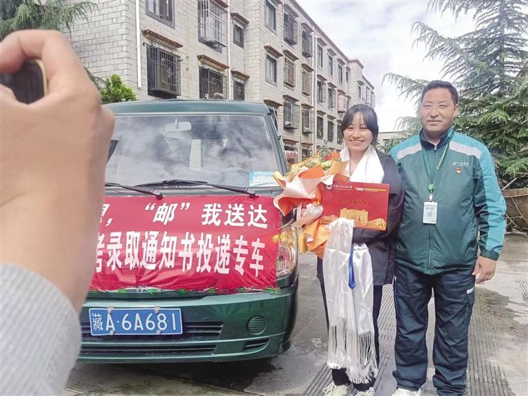 考生拿到錄取通知書。圖由西藏郵政提供