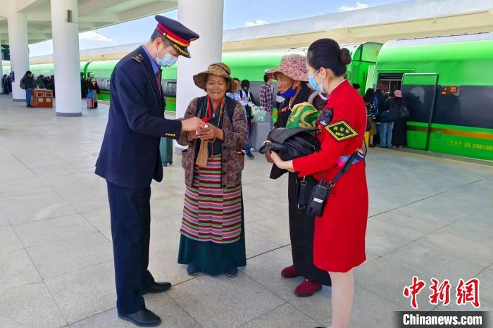 圖為日喀則火車站工作人員服務(wù)旅客。拉薩車務(wù)段 供圖