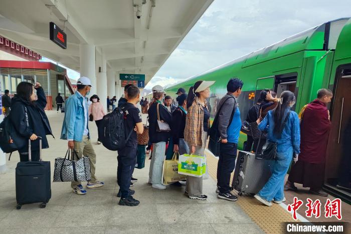 圖為暑運(yùn)期間,旅客在日喀則火車站乘坐高原復(fù)興號。拉薩車務(wù)段 供圖
