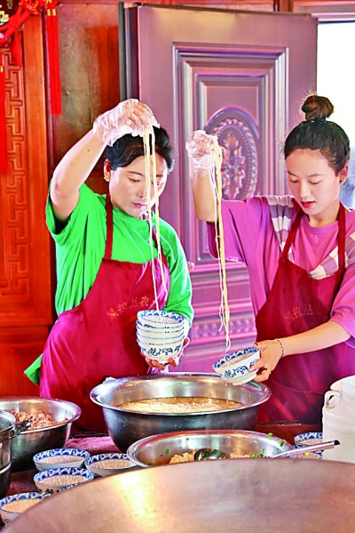 加加面是芒康鹽井的一種美食,顧名思義就是“不停地加”。圖為當(dāng)?shù)匕傩罩谱骷蛹用?。光明日?bào)記者 劉宇航攝