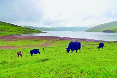 莽錯湖位于芒康縣中部莽嶺鄉(xiāng)境內(nèi),湖面海拔4300多米,水域面積20多平方公里。圖為莽錯湖畔的牦牛群。光明日報(bào)記者 畢玉才攝