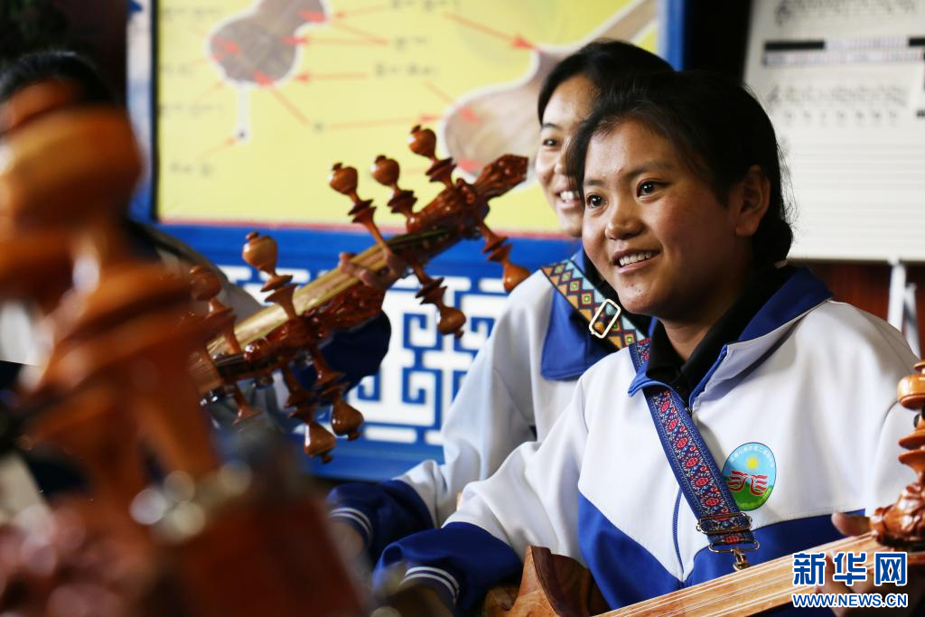 山南市第二高級中學學生正在準備演奏扎木念(7月17日 攝)。新華社記者 聶毅 攝