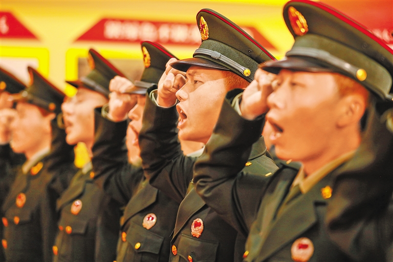 西藏軍區(qū)保障部某管線大隊(duì)組織新兵重溫入伍誓詞,激勵(lì)大家不忘初心、建功軍營。胡強(qiáng) 石建 劉雪峰 攝