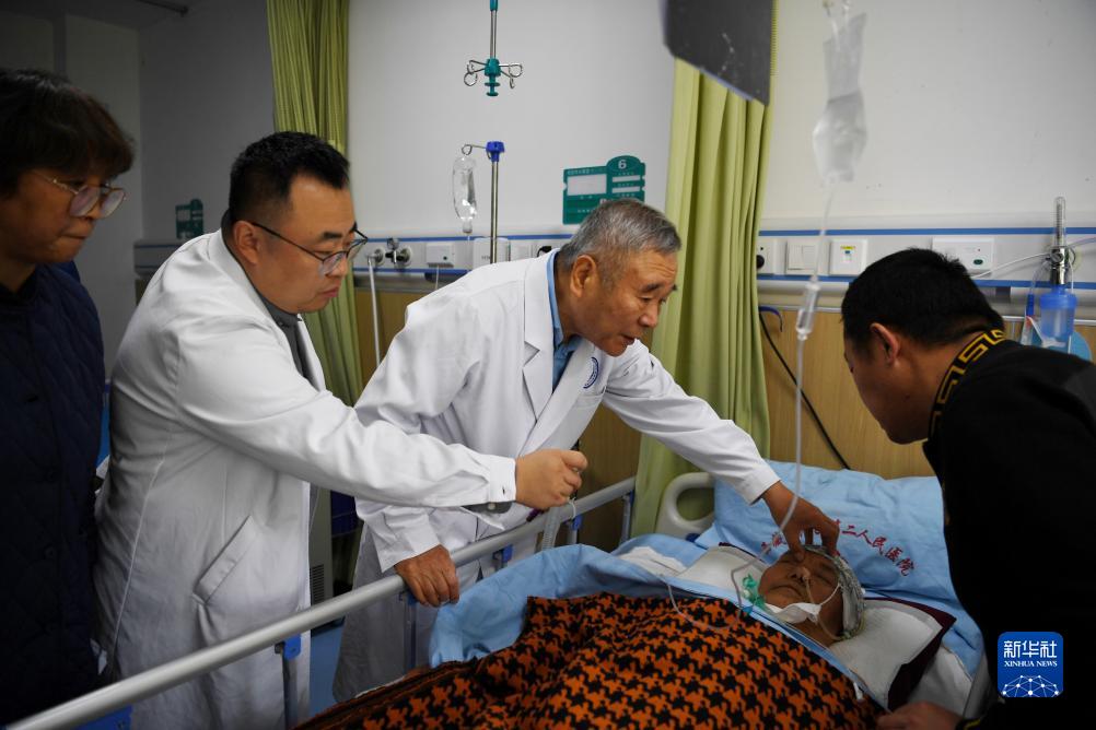 8月10日,中國科學院院士、首都醫(yī)科大學附屬北京天壇醫(yī)院神經(jīng)外科學中心主任醫(yī)師趙繼宗(后右一)在西藏自治區(qū)第二人民醫(yī)院為患者會診。新華社記者 張汝鋒 攝