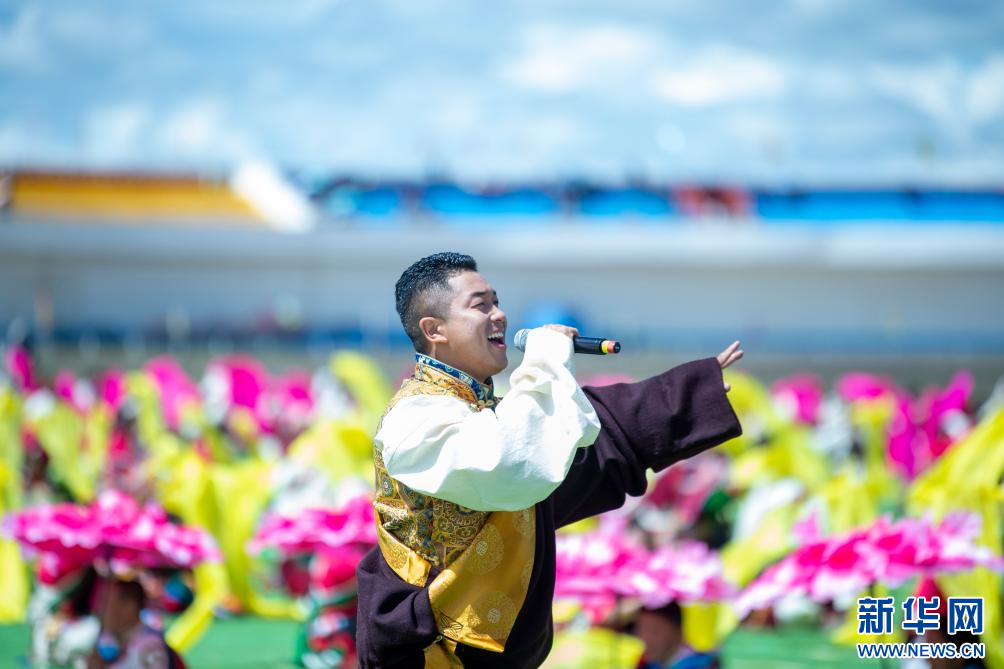8月10日,歌手羅桑在開幕式上唱歌。新華網(wǎng) 旦增努布 攝