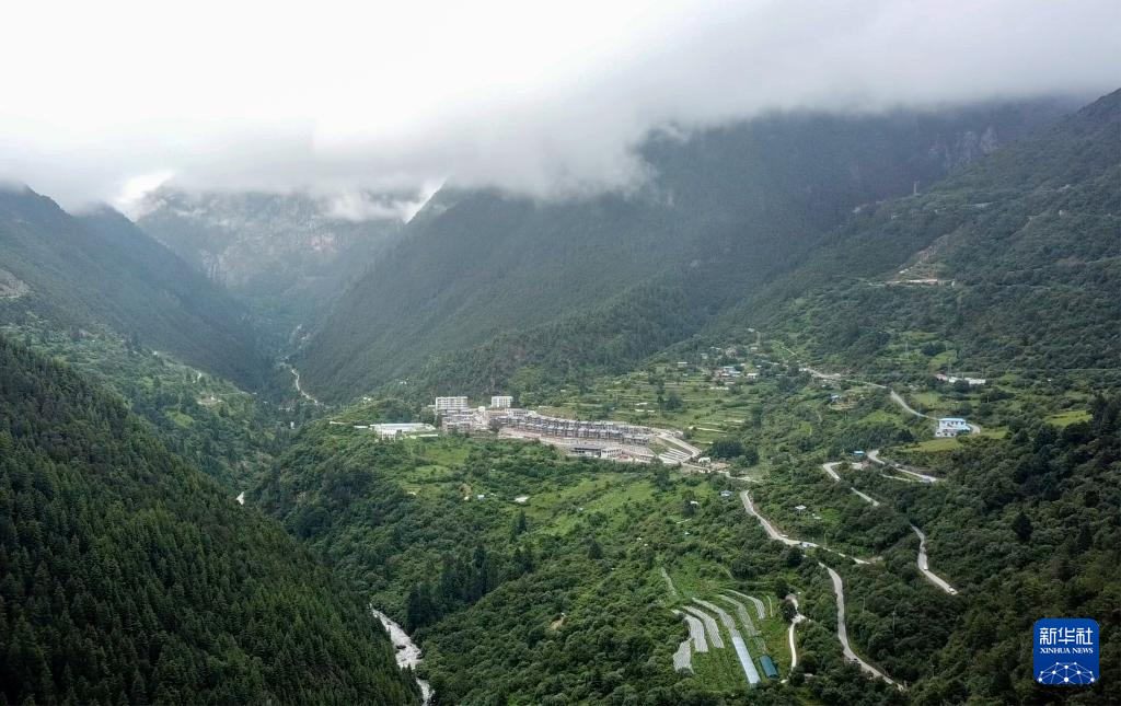 這是錯(cuò)那市貢日門巴民族鄉(xiāng)斯木村,畫面下方覆蓋地膜處為該村的莓茶種植基地。(無人機(jī)照片,7月28日攝)。新華社記者 旦增尼瑪曲珠 攝