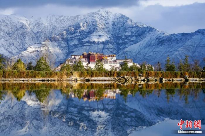 布達拉宮與雪山倒映在拉薩南山湖面。江飛波 攝