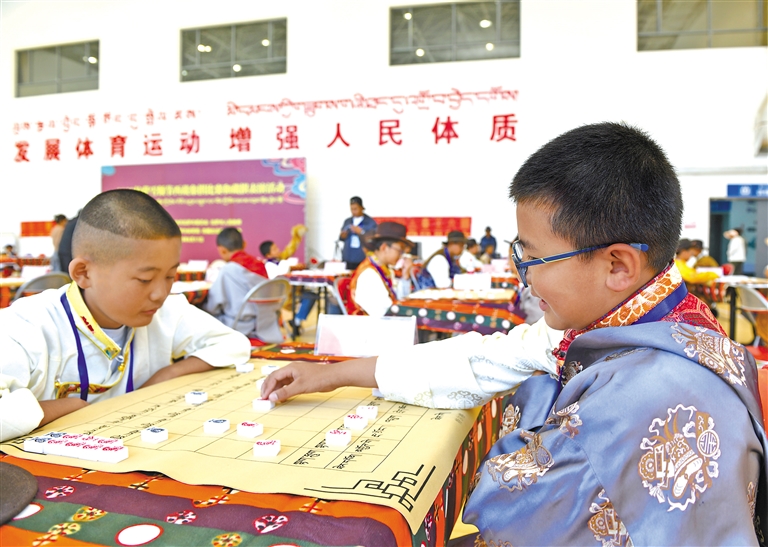 17日上午,在雪頓節(jié)藏棋表演賽上,選手們緊張對(duì)弈。記者 旦增蘭澤 攝