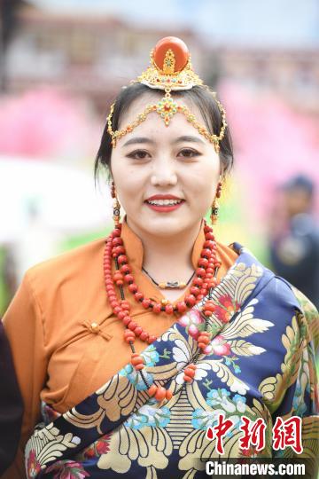 圖為開幕式上穿著節(jié)日盛裝的演員。貢嘎來松 攝