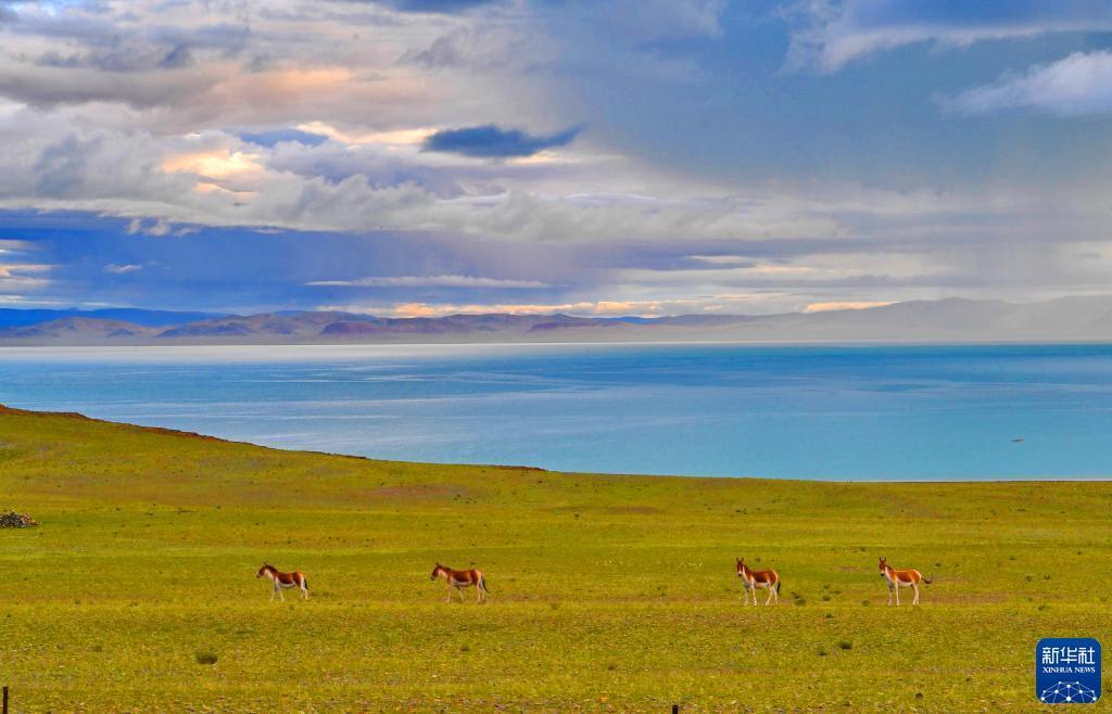 扎日南木錯(cuò)湖畔的藏野驢(8月19日攝)。新華社記者 張汝鋒 攝