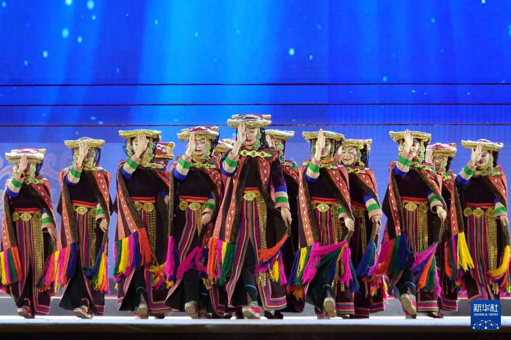 第八屆象雄文化旅游節(jié)開(kāi)幕式現(xiàn)場(chǎng)的文藝表演(8月21日攝)。新華社記者 劉文博 攝