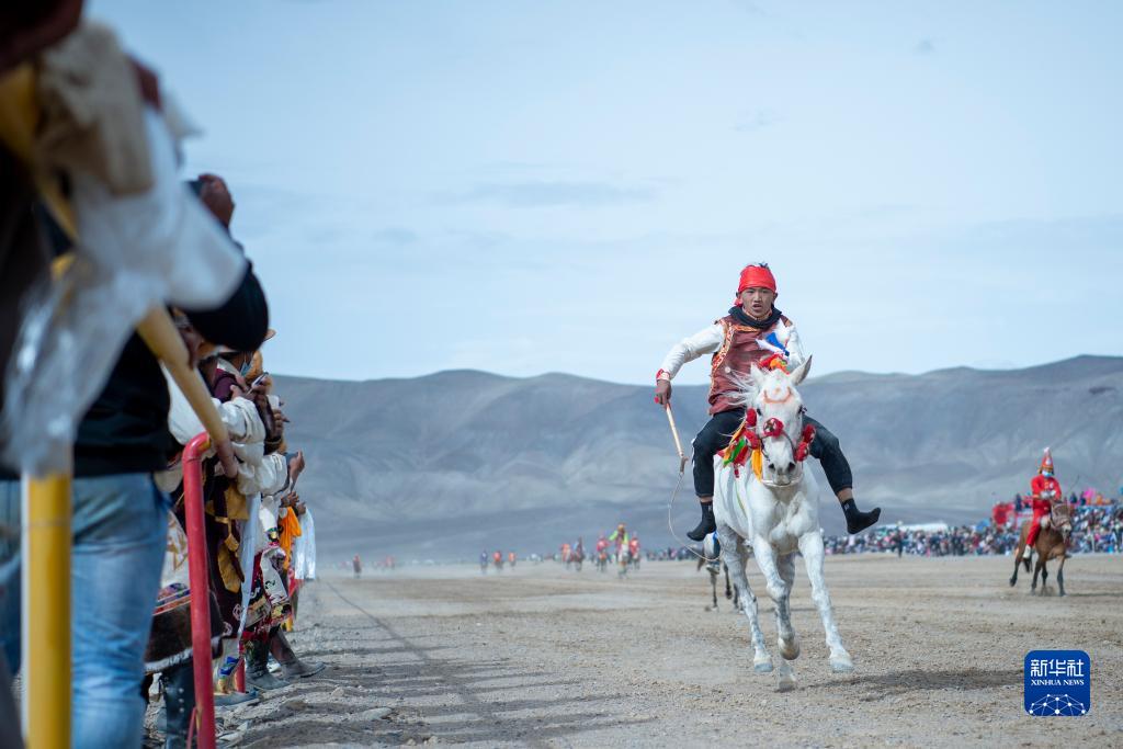 當(dāng)日,西藏阿里地區(qū)“噶爾恰欽”賽馬會在噶爾縣賽馬場開幕。來自阿里地區(qū)各縣的數(shù)十名騎手參加了馬術(shù)表演、走馬、跑馬等活動。