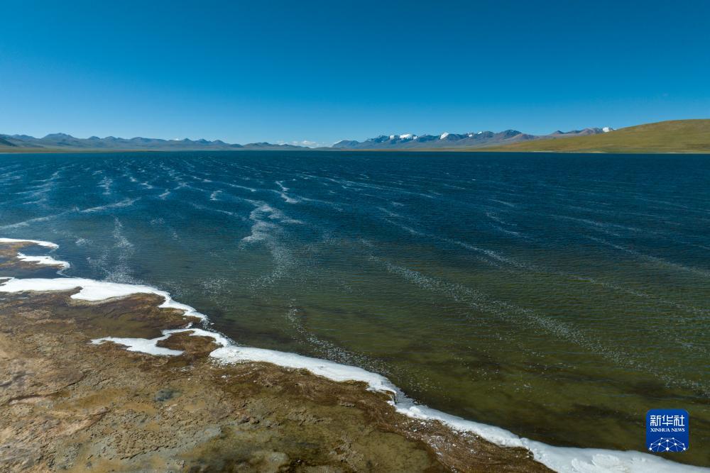 飛鳥從打加錯(cuò)湖面掠過(無人機(jī)照片,8月30日攝)。新華社發(fā)(旦增努布 攝)