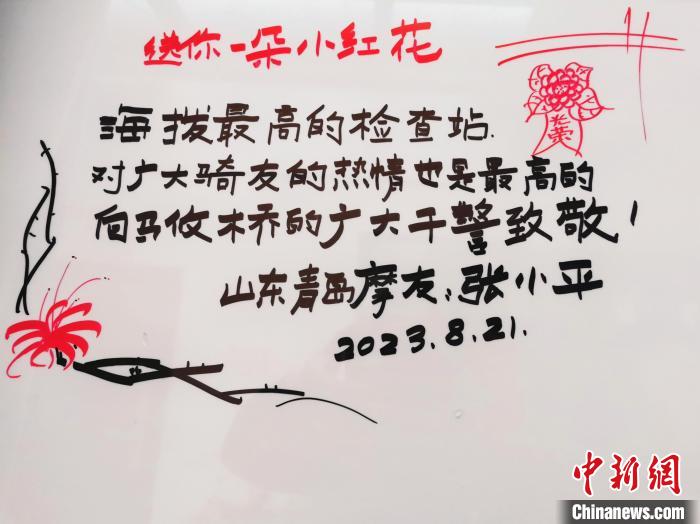 圖為馬攸橋邊境檢查站“愛心驛站”里騎友留言。申孟勇 攝