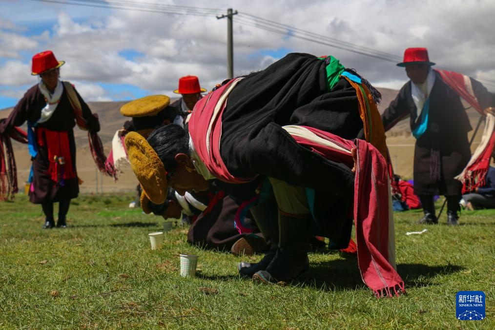 西德村“果爾孜”舞非遺傳承人旦成益西正在表演(8月10日攝)。新華社記者 聶毅 攝