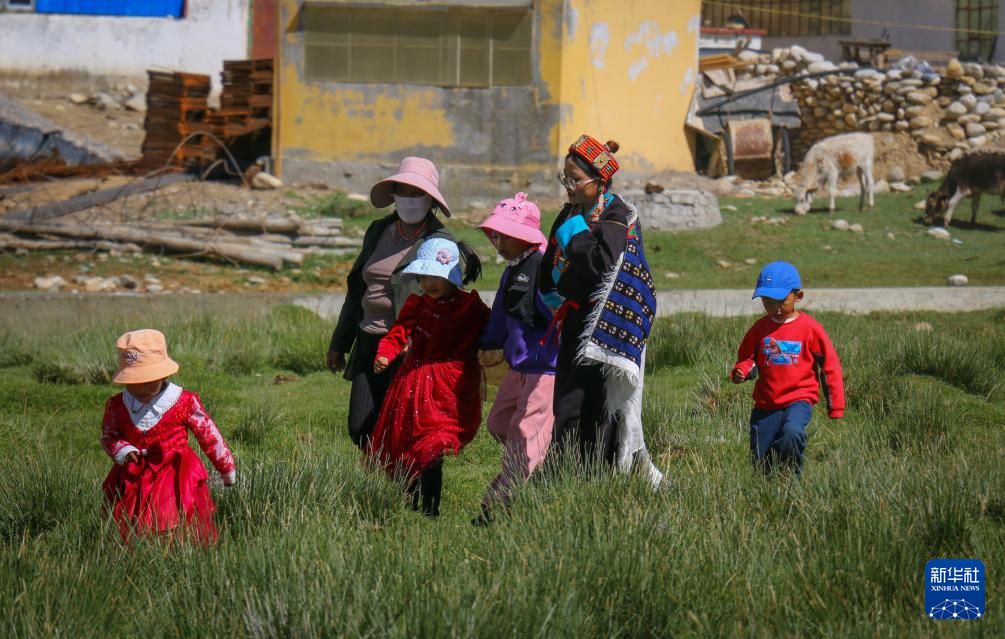 仁貢村村民正在前往表演現(xiàn)場(chǎng)(8月11日攝)。新華社記者 聶毅 攝