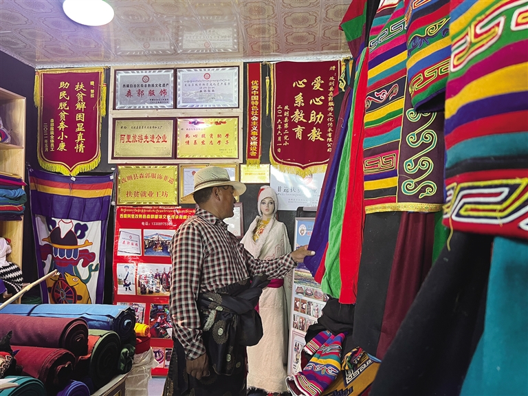 邊巴瓊吉是努拉的小女兒,今年以優(yōu)異的成績考上了湖南師范大學(xué),她表示,由于家里人都會(huì)制作“森郭服飾”,她從小就對(duì)這種服飾有很深的感情。“對(duì)我來說,‘森郭服飾’是童年里最艷麗的色彩。逢年過節(jié),我都會(huì)穿上爸媽手工制作的‘森郭服飾’,別的小朋友都特別羨慕我?!边叞铜偧χf,“每一件‘森郭服飾’都是爸媽精心制作的,一針一線里包含了他們對(duì)于傳統(tǒng)服飾的堅(jiān)守,也讓我認(rèn)識(shí)到傳承這門手藝的重要性,以后有機(jī)會(huì)我也想成為守護(hù)‘森郭服飾’的一員?!?/p>
